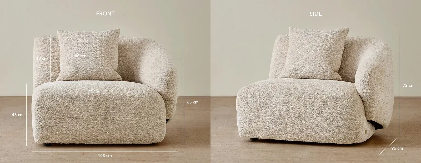 Designed as part of the modular Willow collection, this right arm module can be used alone as a cosy single seat or combined with other pieces to create your ideal configuration.