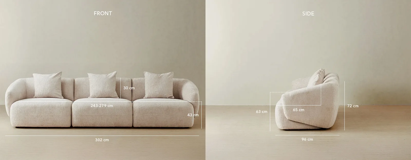 Designed for comfort and flexibility, the three modular pieces can be arranged to suit a variety of living spaces. It comfortably seats up to three, making it perfect for intimate gatherings or everyday lounging.