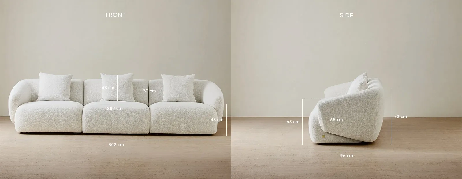 The Willow 3 Pieces Modular Sofa is upholstered in a stone white woven fabric that offers a refined texture and a clean, contemporary feel. The deep seats and gently contoured form create a relaxed, sculptural silhouette.