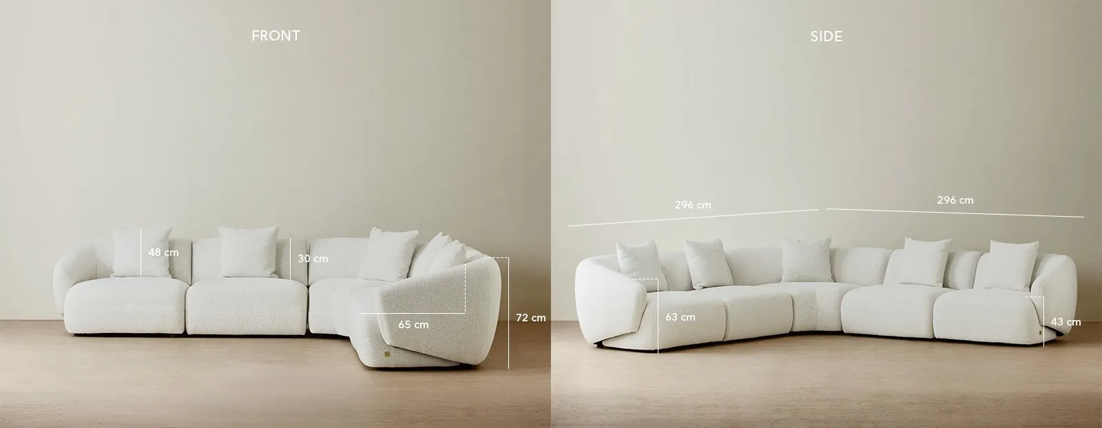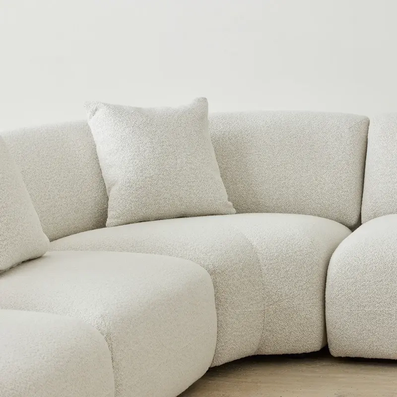 The Willow Modular Corner Sofa is upholstered in a stone white woven fabric that offers a refined texture and a soft, contemporary look. The deep seats and gently contoured form create a relaxed, sculptural silhouette.