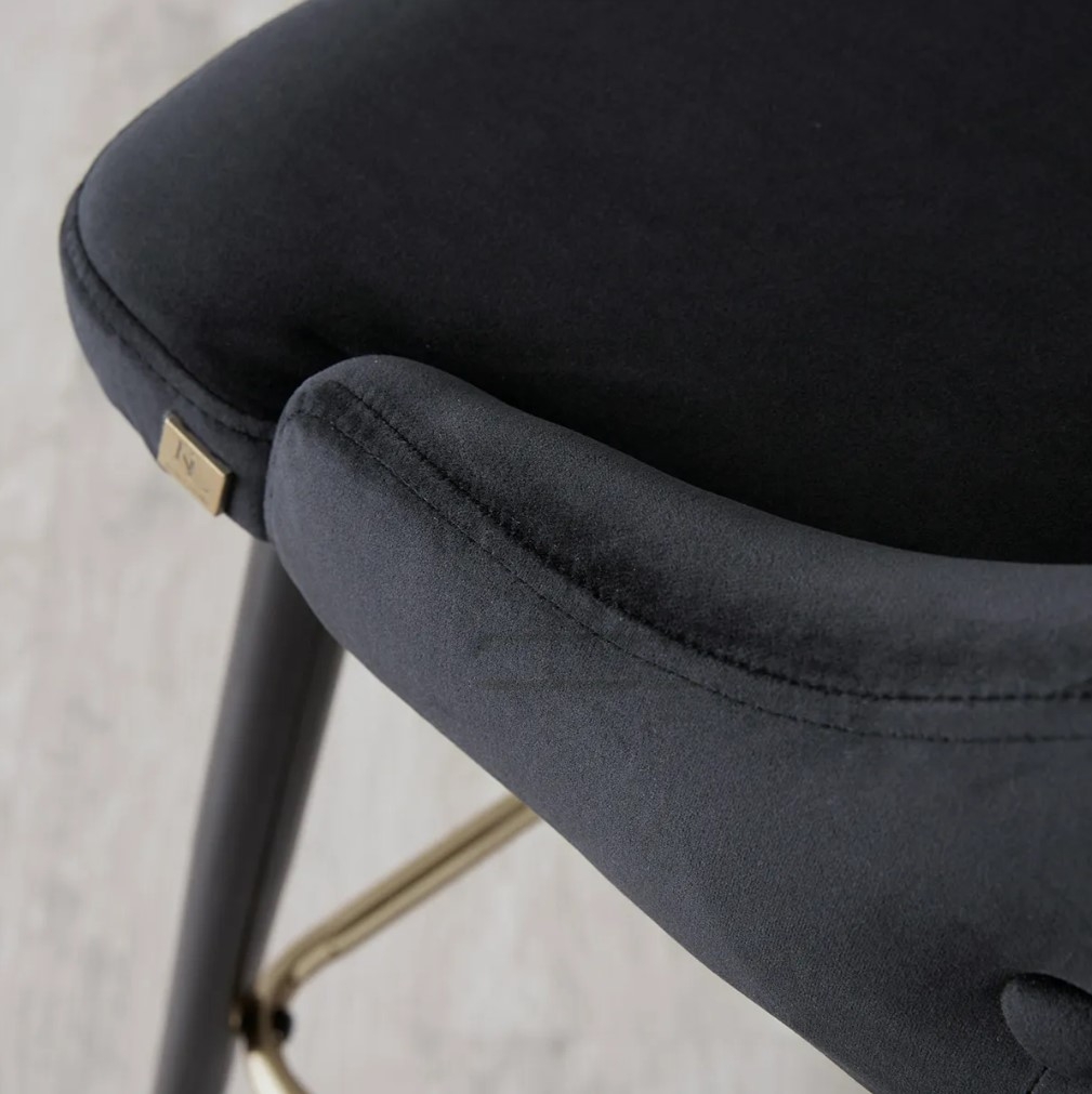 Give your home bar that sought-after stylish Hamptons-inspired look with the Winston II Black Velvet Bar Stool. Lounge comfortably on its gorgeously curved seat, padded with dense foam. Covering the entirety of the seat with its softness is sumptuous velvet fabric. This velvet fabric comes in a luxe black shade, which adds to the Winston's refined aesthetic.