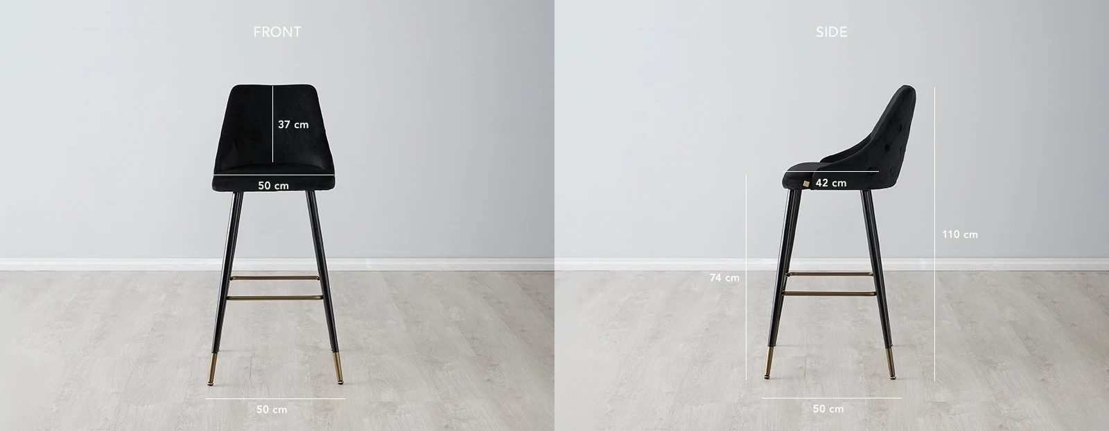 Give your home bar that sought-after stylish Hamptons-inspired look with the Winston III Black Velvet Bar Stool. Lounge comfortably on its gorgeously curved seat, padded with dense foam. Covering the entirety of the seat with its softness is sumptuous velvet fabric. This velvet fabric comes in a luxe black shade, which adds to the Winston's refined aesthetic.
