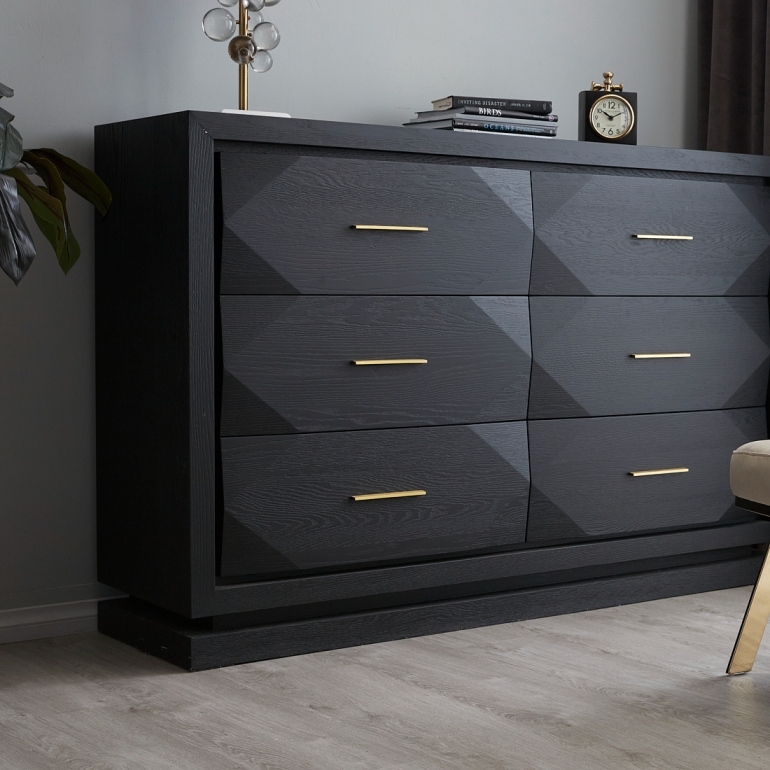 Add personality to your space as the Xandra's top section offers enough room to decorate with figurines, paintings and table lighting options. Stay organized as you store your cutlery, plates and more on the Xandra's six spacious pull-out drawers. Pair the Xandra Black Oak Veneer Sideboard with one of our majestic dining tables for a truly luxurious dining room. The Xandra Black Oak Veneer Sideboard also comes in a Dark Walnut Brown coloured variant.