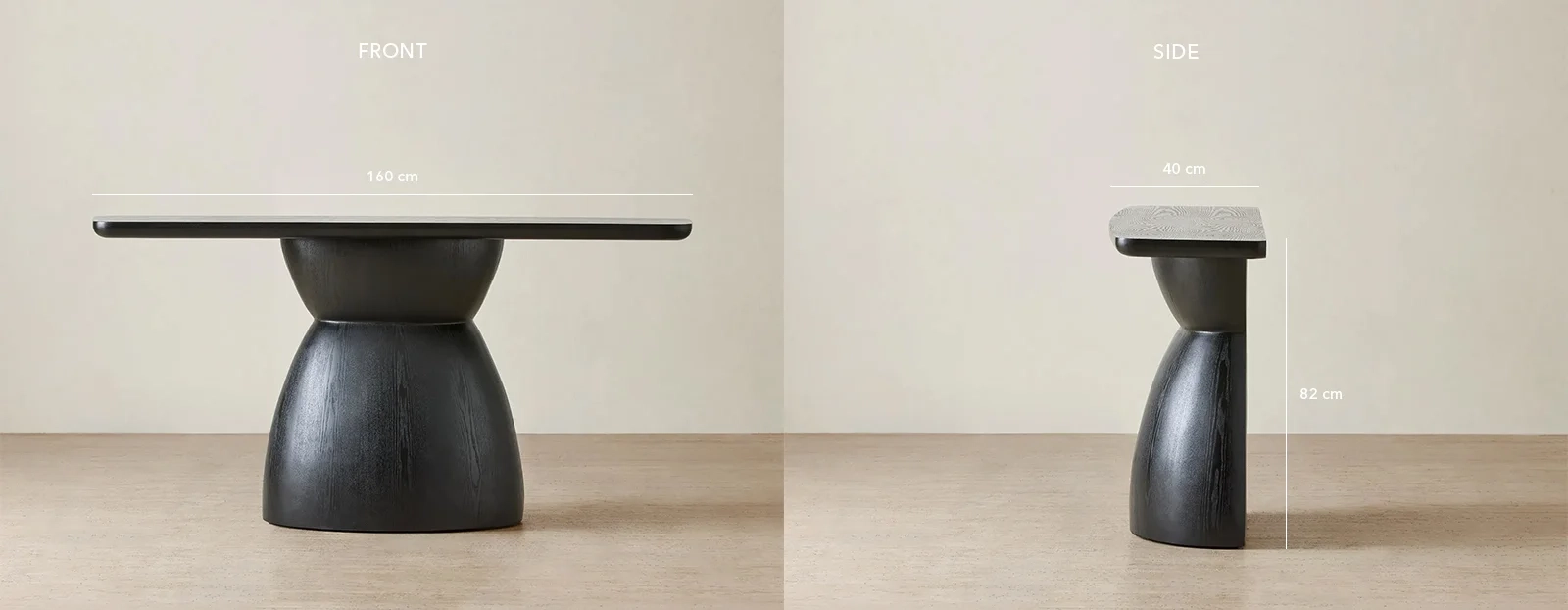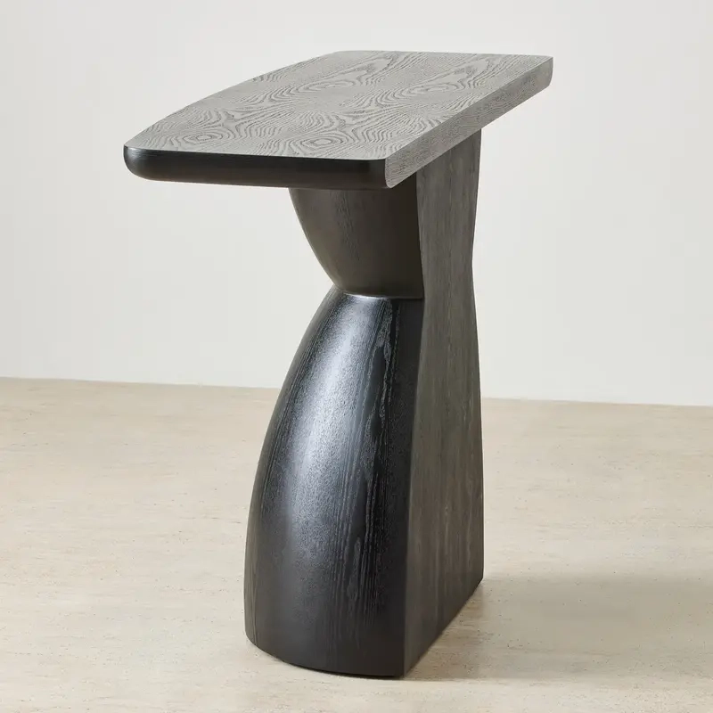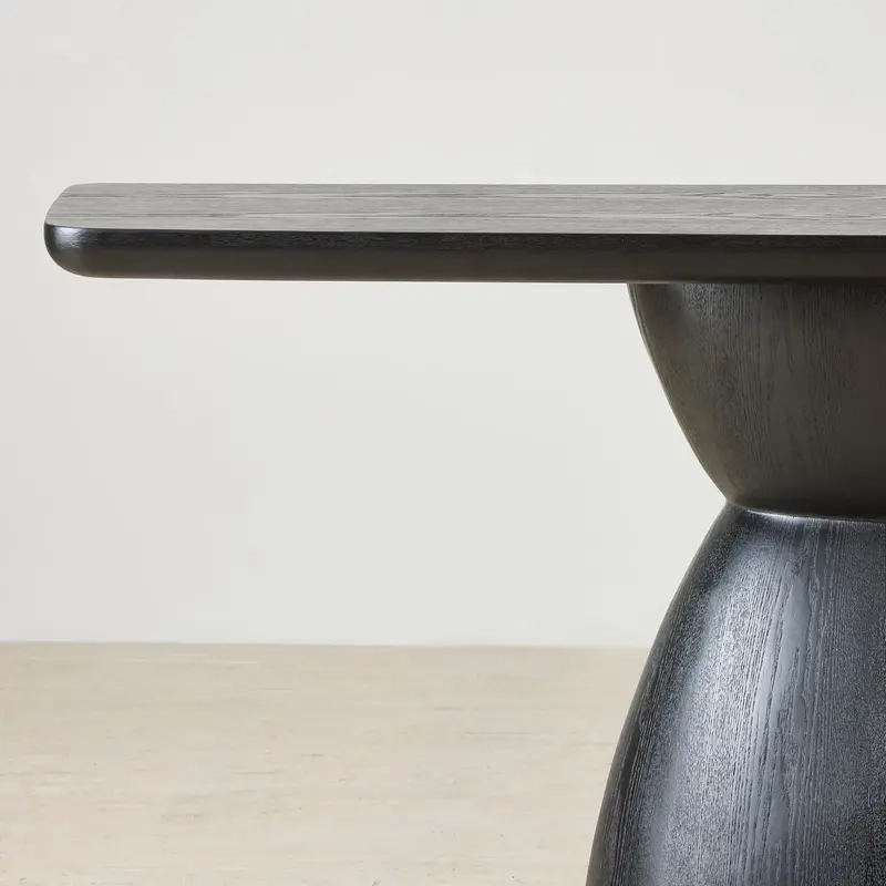 Defined by its sculptural halved pedestal silhouette, the table embodies balance and modern artistry in a single, seamless shape. Crafted in a deep black wood finish, the Xavier exudes contemporary elegance.