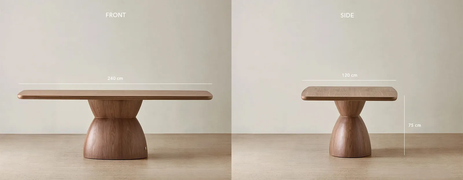 Designed with generous legroom and a sturdy sculptural pedestal base, the Xavier offers both comfort and practicality. Its size seats eight to ten guests with ease, making it perfect for gatherings and memorable meals.