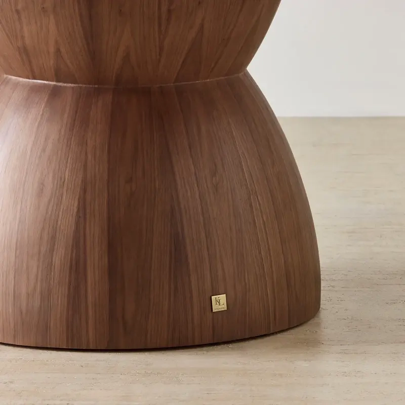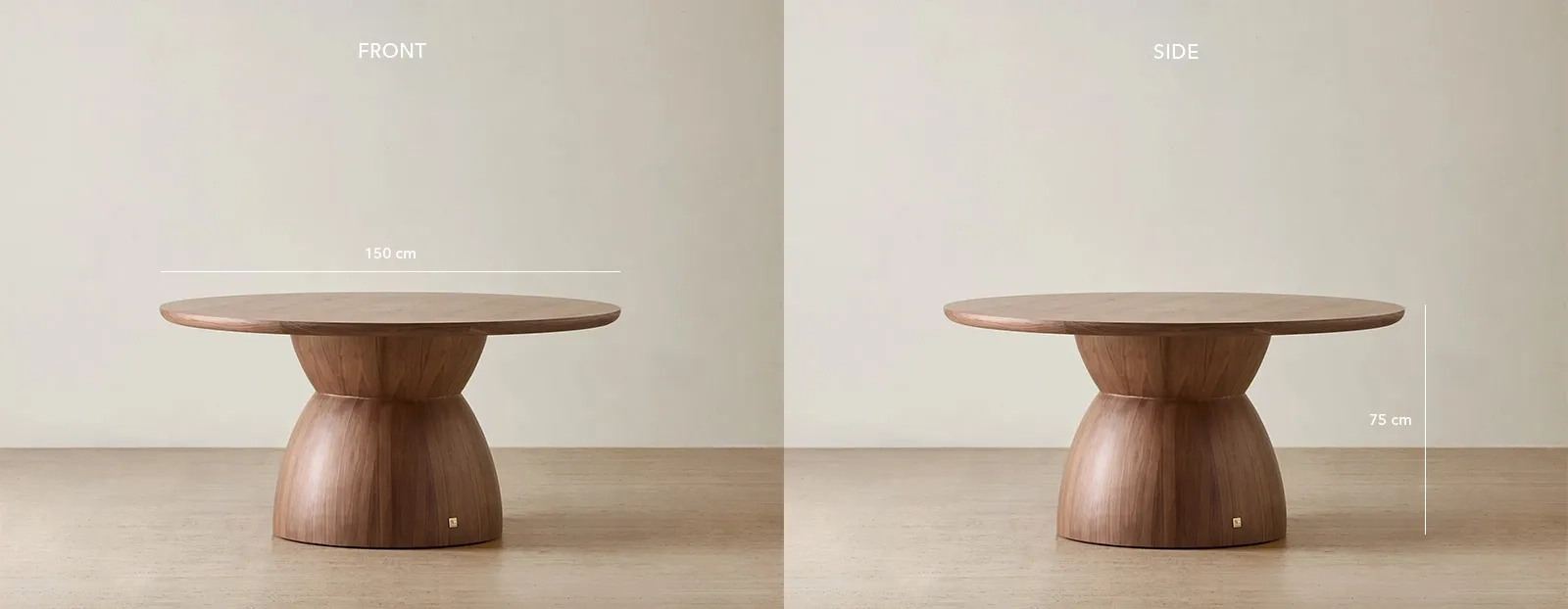 The Xavier Round Dining Table embodies modern rustic elegance. Its sculptural pedestal base and rounded top create a warm, inviting centerpiece for intimate dining spaces.