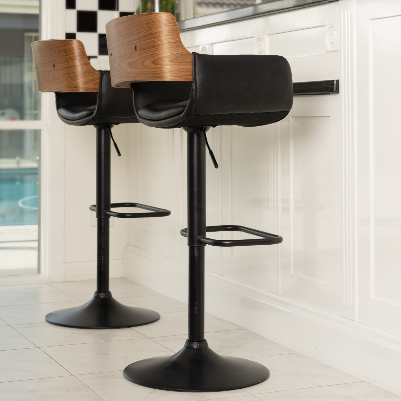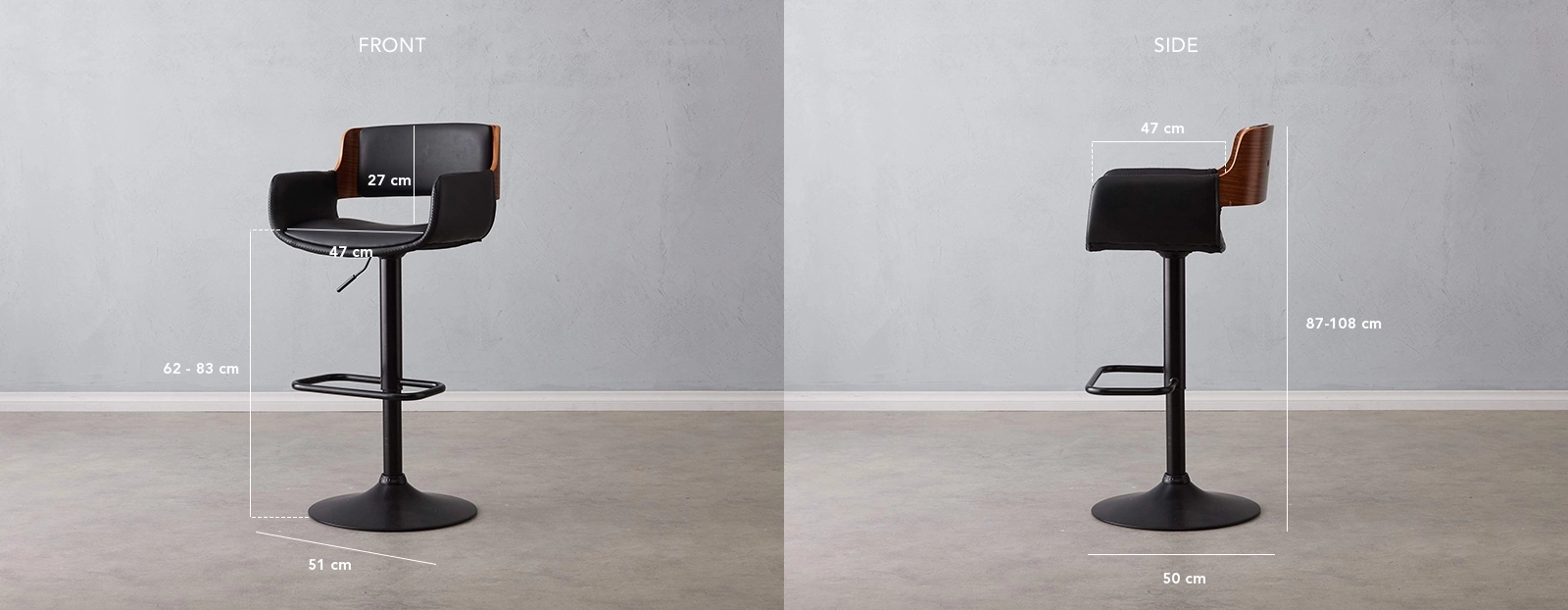 Introduce a touch of mid-century modern flair to your dining areas or home bar with the exceptional Zadar Bar Stool. Meticulously crafted, its wooden seat showcases sleek and stylish curves, while boasting a bold open-back design that exudes contemporary elegance. Experience unparalleled comfort as you sink into the dense foam cushioning, wrapped in luxurious leather upholstery. The Zadar Bar Stool is designed with convenience in mind. Its gas lift mechanism allows for effortless height adjustment, easily controlled with a well-placed lever located under the seat.