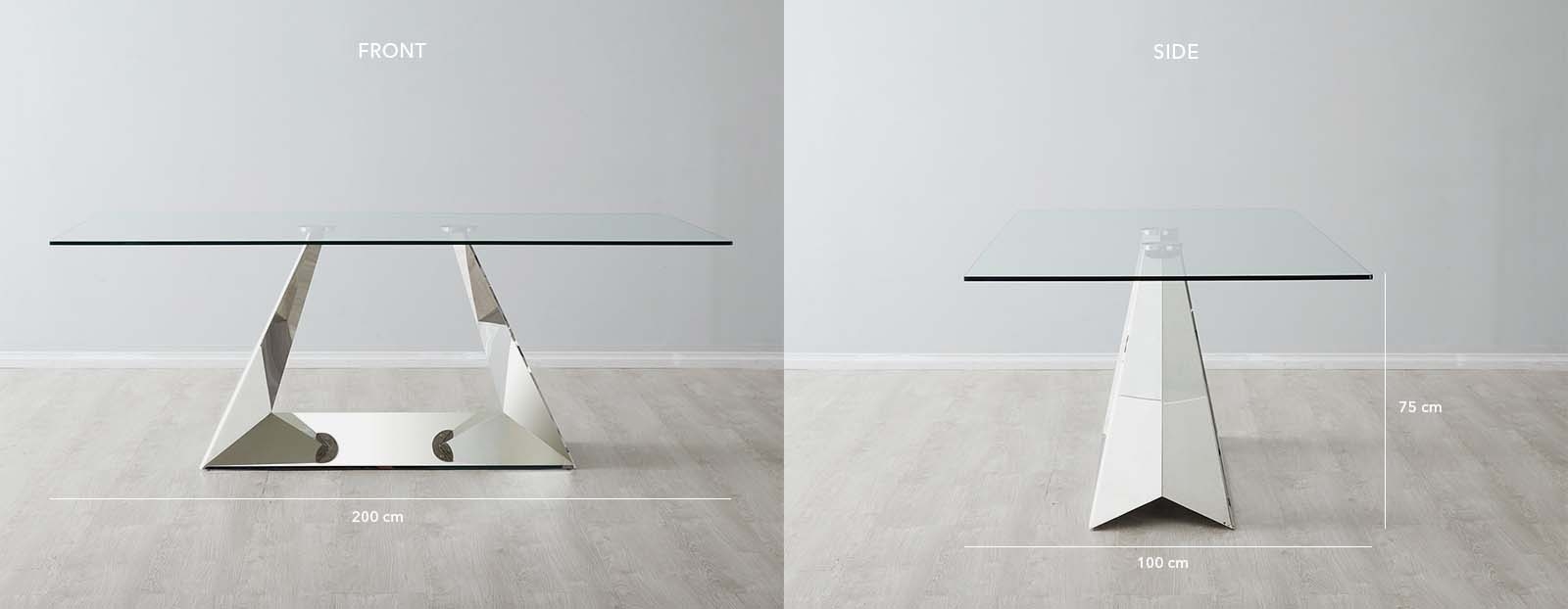 Elevate your dining experience with the sleek and stylish Zephyr Dining Table. Designed to impress, this modern masterpiece will be the centrepiece of your dining area, captivating your guests with its contemporary elegance. The Zephyr Dining Table boasts a rectangular table top crafted from high-quality glass, providing a luxurious and spacious surface for up to 6 people to gather and enjoy meals together. The precision-cut glass adds a touch of sophistication, reflecting light and creating an airy ambience in your dining space.
