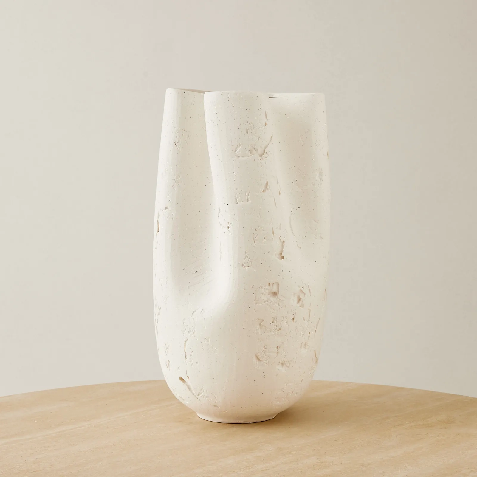 Zinnia 50cm White Cast Stone Ceramic Vase